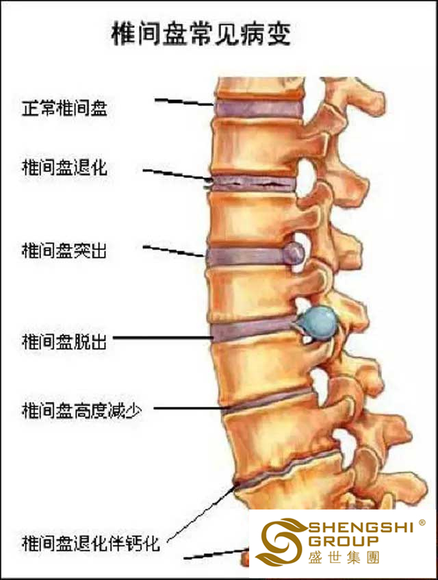 上圖是我們的脊椎病變示意圖。我們脊椎的骨頭和骨頭之間,都會有脊間盤。 那椎間盤到底有什么作用呢?