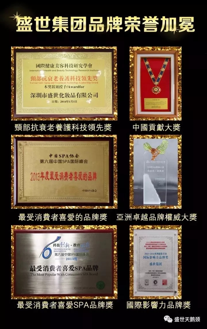 盛世集團專業頸部保養品牌,用敢為天下先的創新精神造福千萬女性,用一流的產品和優質的服務堅持傳播愛,傳播健康名揚四海,載譽千萬。