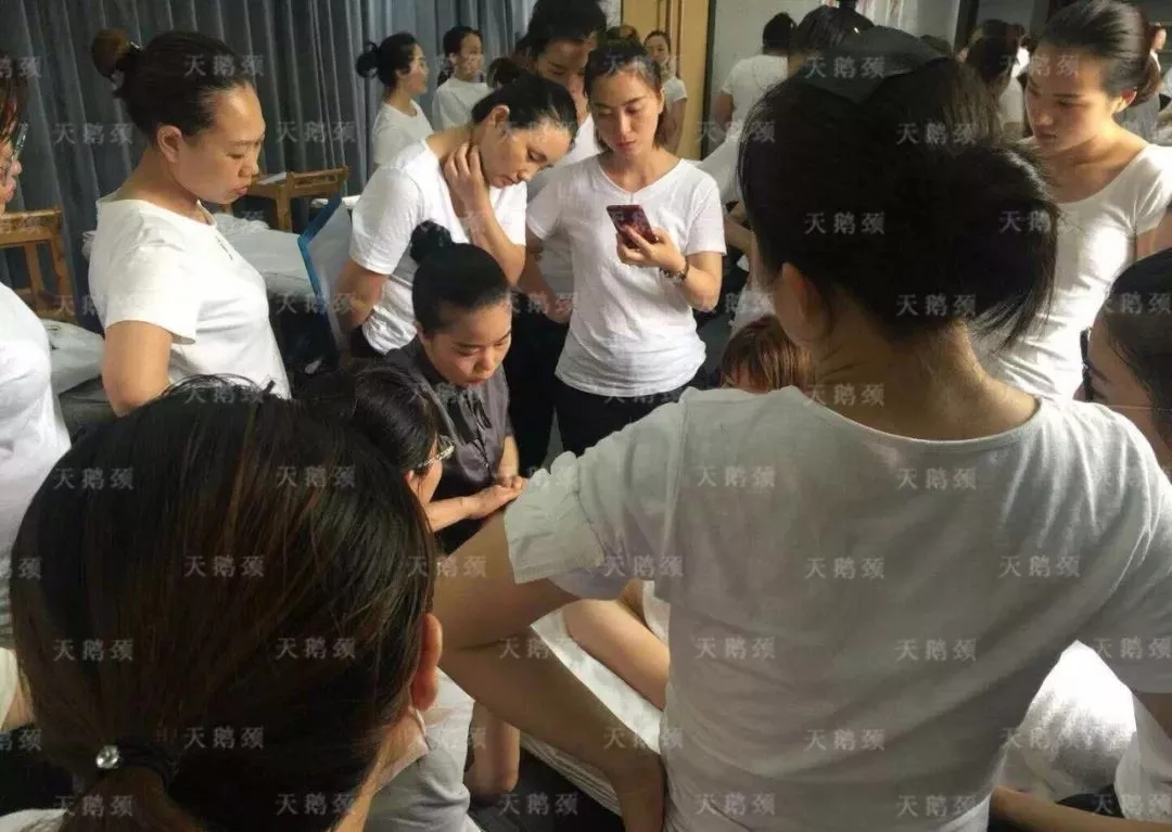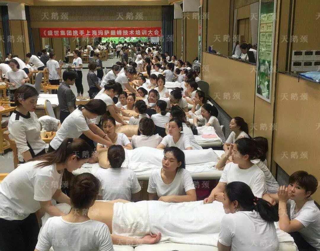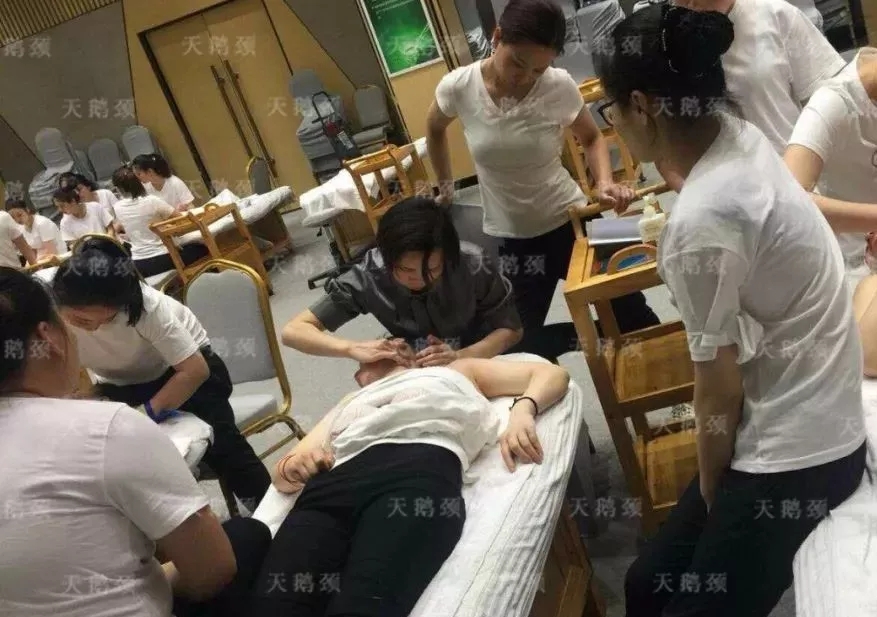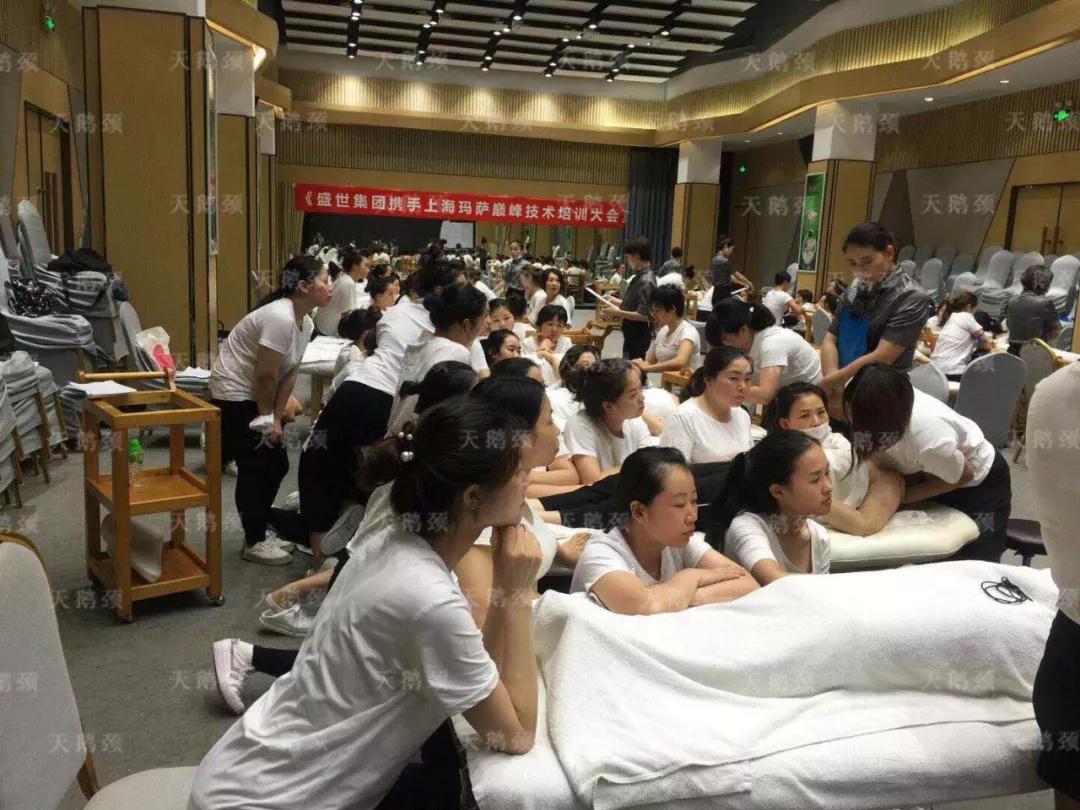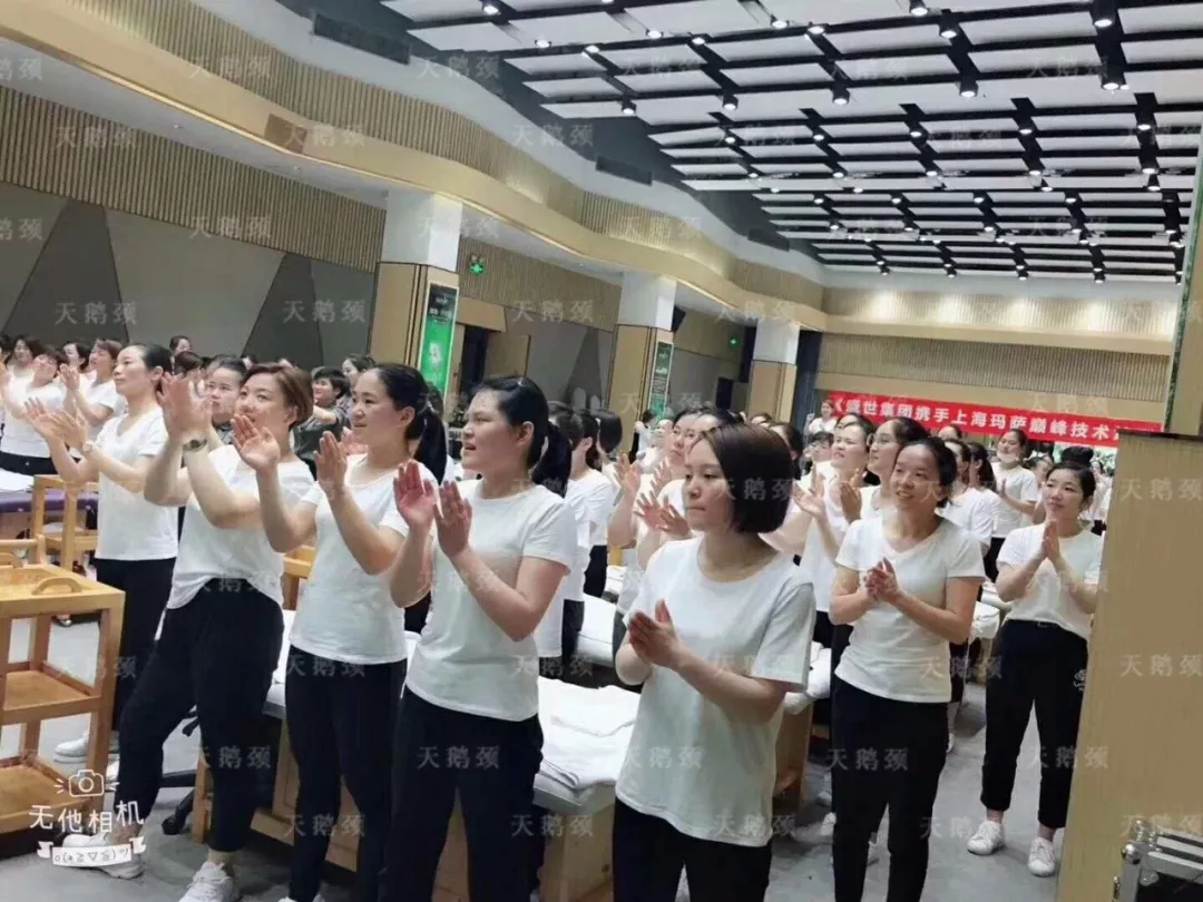 不僅如此,盛世的家人們更是啟動現場教學模式,近距離、手把手的為瑪薩的家人們培訓頸部專業手法,細致入微的講解著每一個流程、每一個細節,把每一點做到極致。而瑪薩的高管顧問們也在認真學習,并嚴格要求自己!