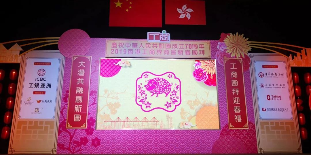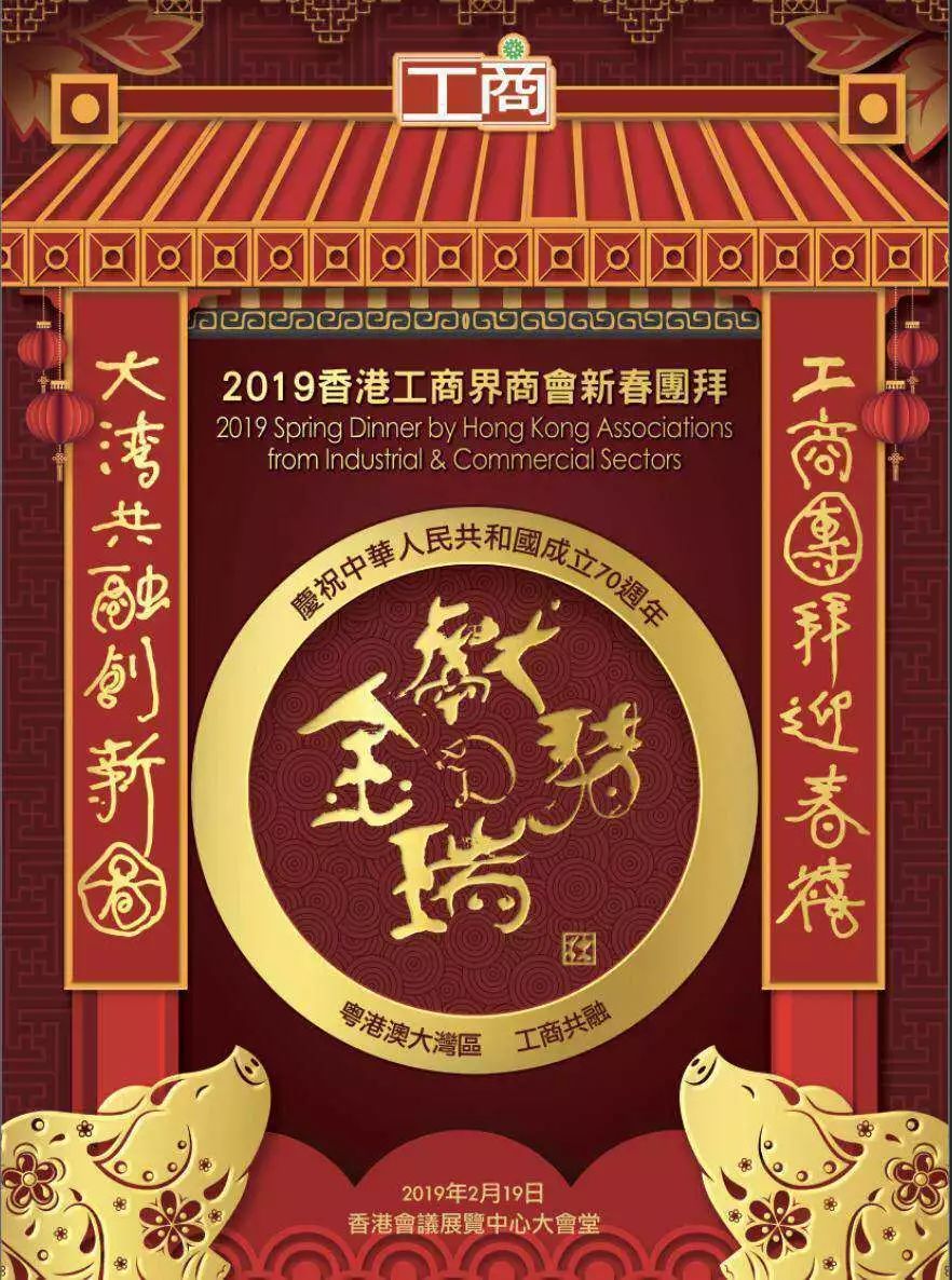 2019年2月19日,農歷正月十五,元宵佳節日,香港工商界商會于香港會議展覽中心大會堂舉行新春團拜,匯聚粵港澳大灣區政商界人士,共慶新中國成立七十周年。這次新春團拜陣容鼎盛,不同凡響!